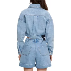 Wholesale π Maje Bedrio Studded Denim Crop Jacket Blue π€©