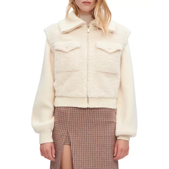 - Main fabric: 100% polyester; lining: 100% polyester; rib-knit: 56% acrylic/24% wool/20% polyamide; collar: 56% acrylic/24% wool/20% polyamide; sleeves: 56% acrylic/24% wool/20% polyamide