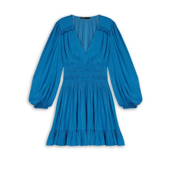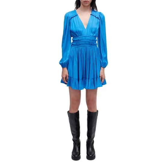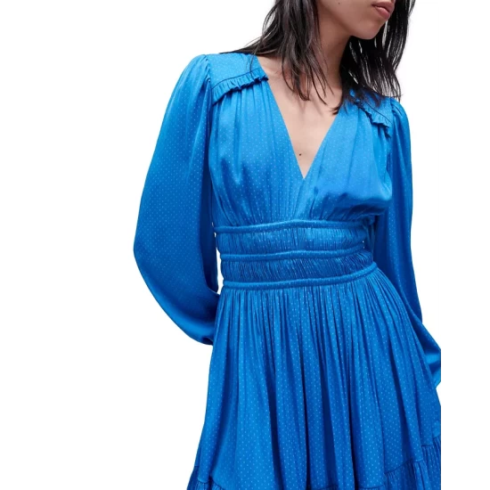 For our 150th anniversary, the Parisian label updated their best-selling styles with specific New York flair. A vivid blue hue and subtle dot print give this stunning mini dress city-worthy style, while its plunging neckline, ruffles, and shirred details embody Maje’s iconic bold, glamorous style. In this exclusive dress you’ll have a true New York moment, wherever the night takes you.