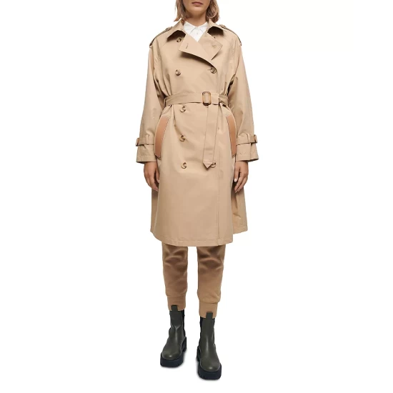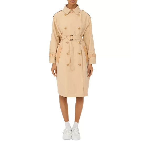 - Model measurements: 5’10” height, 33″ bust, 26″ waist, 35.5″ hips, wearing a Maje size 1 or small