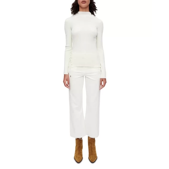 - Laced detail at right side with gold-tone eyelets, tie at right hem