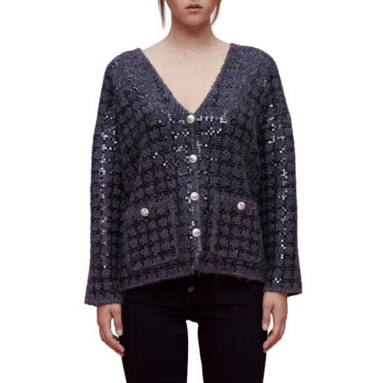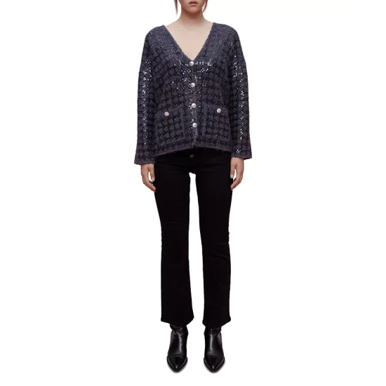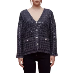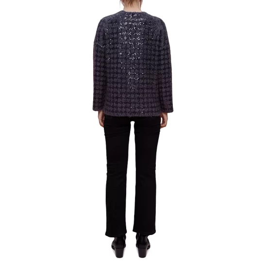 - Main: 58% polyester/17% acrylic/15% polyamide/7% wool/2% mohair/1% elastane; sequins: 100% polyethylene