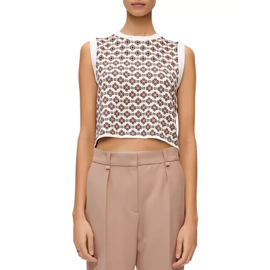 - Main: 76% viscose/9% polyamide/8% polyester/5% metallic fibers/2% elastane; ribbed trim: 96% cotton/3% polyamide/1% elastane