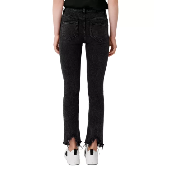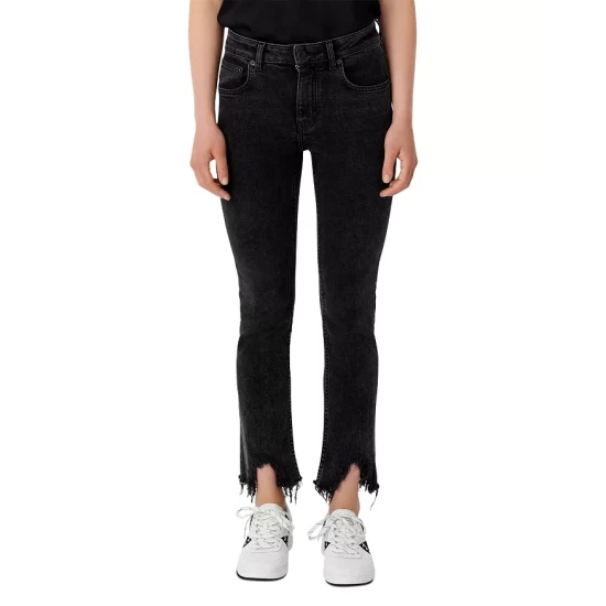 - Straight-leg silhouette, raw hem with a ripped effect on the ankles