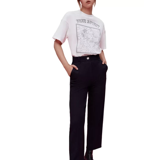 - Straight-leg silhouette