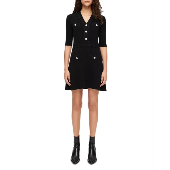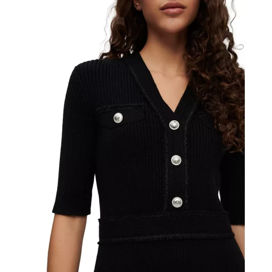 - Mini ribbed and braid trim at neckline, front placket, pockets and waistband