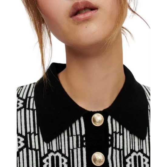 - 43% acrylic/29% wool/28% nylon; collar: 40% acrylic/30% wool/29% nylon/1% elastane; cuffs: 42% acrylic/32% wool/26% nylon