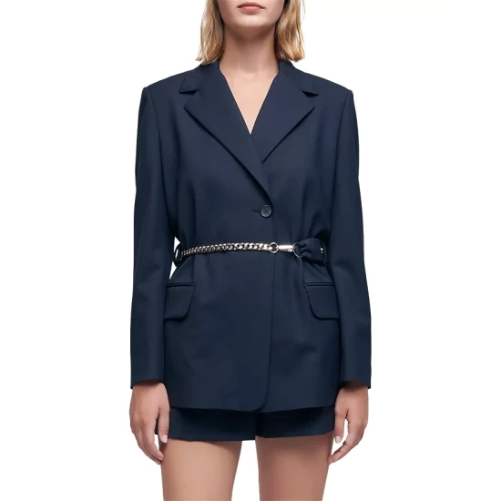 - Main fabric: 53% polyester/44% virgin wool/3% elastane; lining: 100% viscose; buckle: zamac; chain: brass